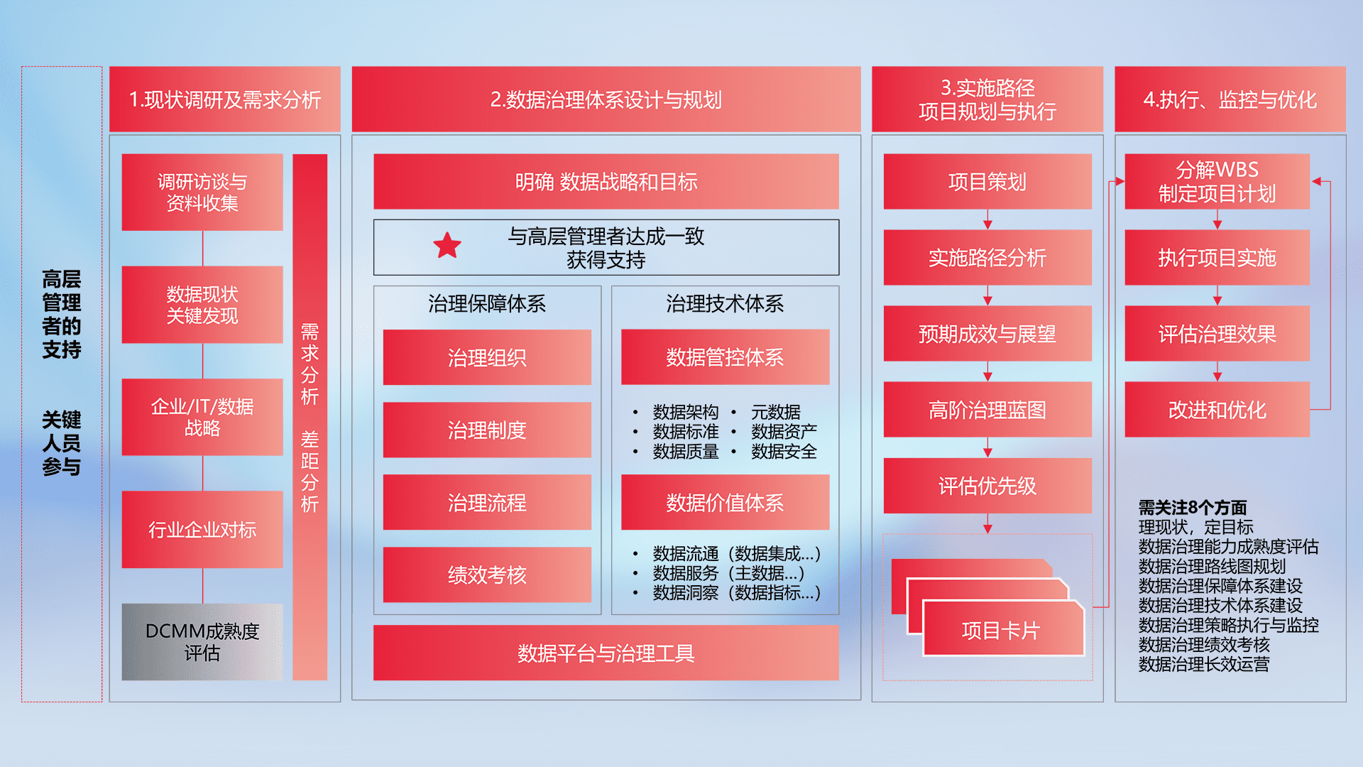 制定并执行统一的数据标准,,,规范数据定义和格式,,,,消除冗余和不一致性,,实现跨部门和跨系统的数据一致性,,,为企业提供标准化的数据基础。。。。